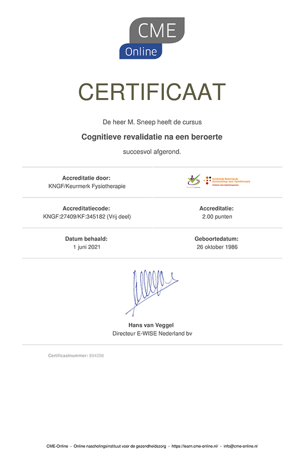 - Theoriecursus: Cognitieve revalidatie na een beroerte;