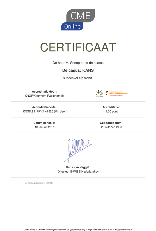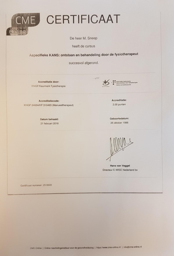 - Theoriecursus: Aspecifieke KANS: ontstaan en behandeling door de fysiotherapeut;