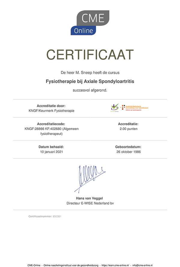 - Theoriecursus: Fysiotherapie bij Axiale Sponyloartritis;
