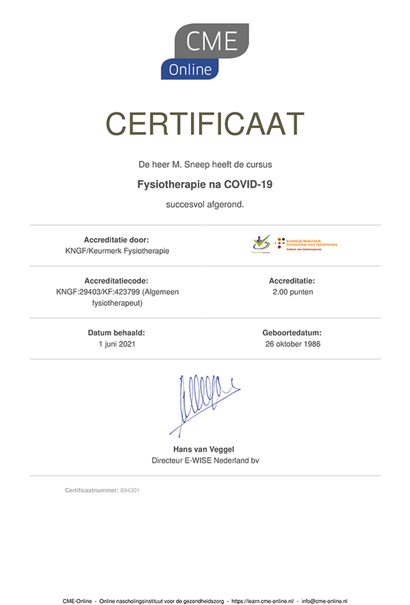 - Theoriecursus: Fysiotherapie na COVID-19;