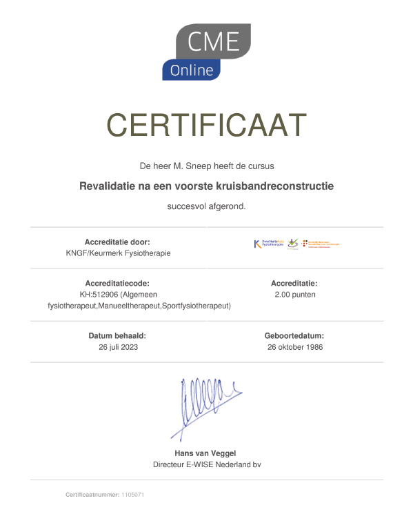 - Theoriecursus: Revalidatie na een voorste kruisbandreconstructie;