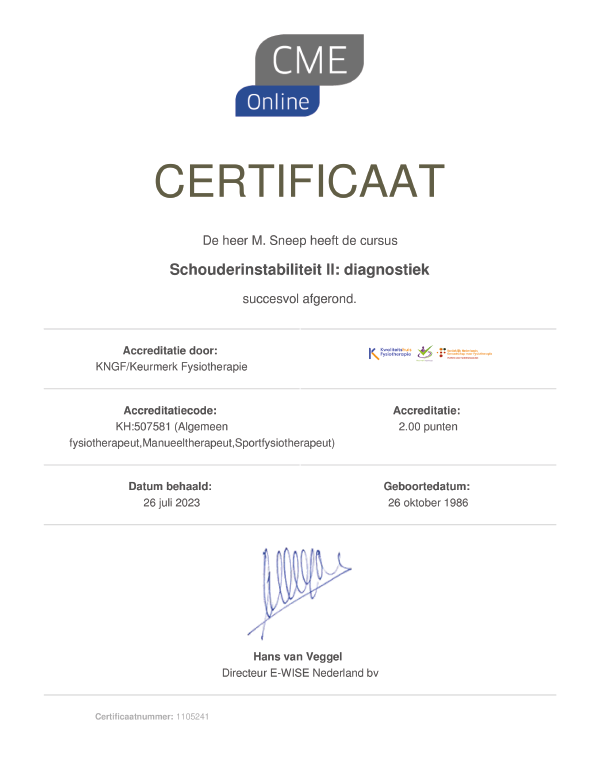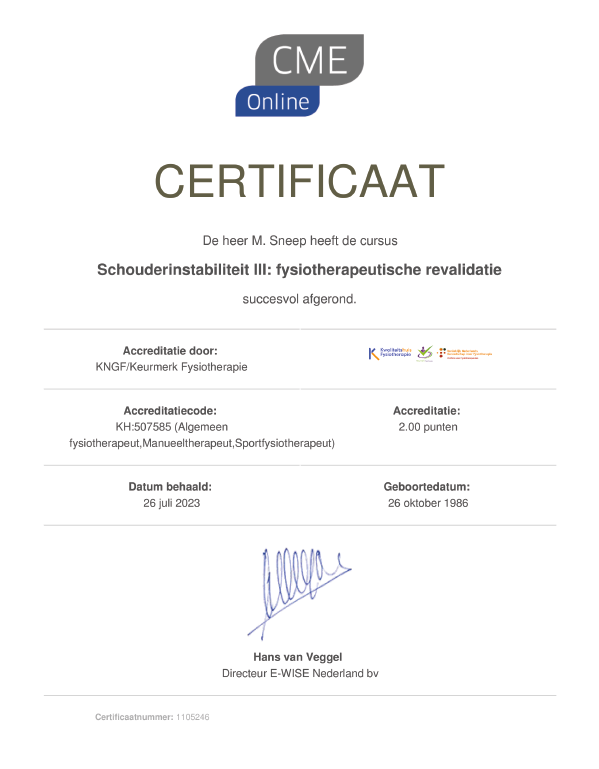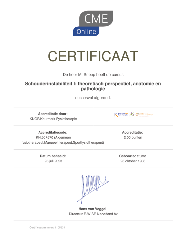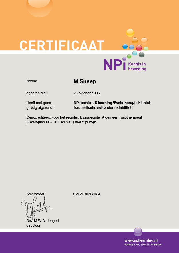 - Theoriecursus: Fysiotherapie bij niet-traumatische schouderinstabiliteit;