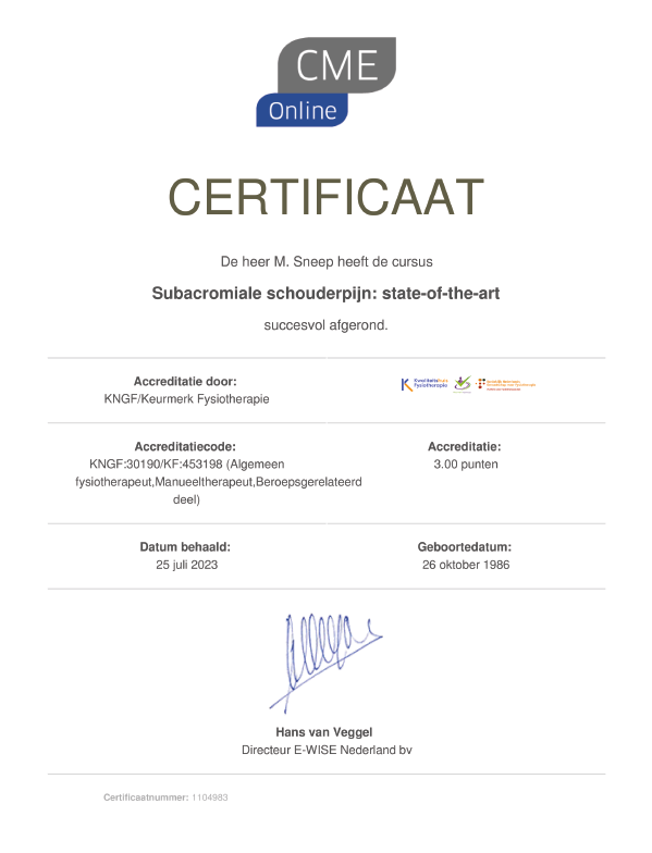 - Theoriecursus: Subacromiale schouderpijn: State-of-the-art.