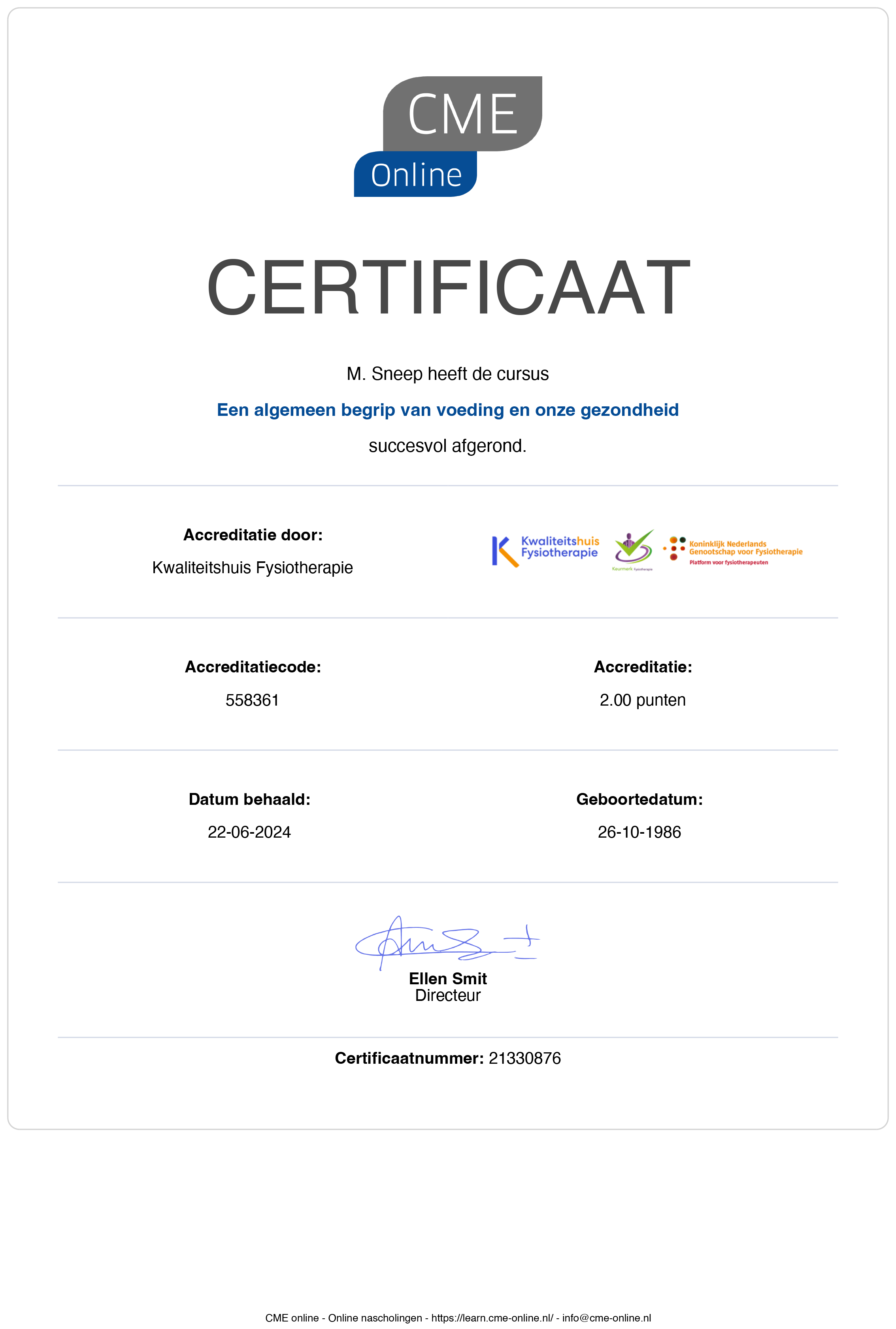 - Theoriecursus: Een algemeen begrip van voeding en onze gezondheid;
