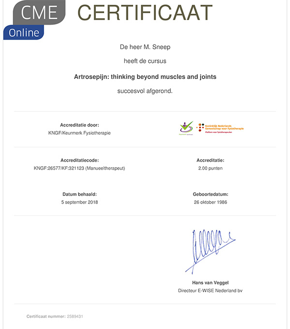 - Theoriecursus: Artrosepijn: thinking beyond muscles and joints;