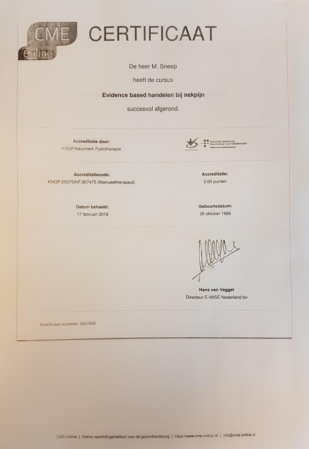 - Theoriecursus: Evidence based handelen bij nekpijn;