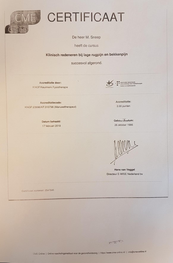 - Theoriecursus: Klinisch redeneren bij lage rugpijn en bekkenpijn;