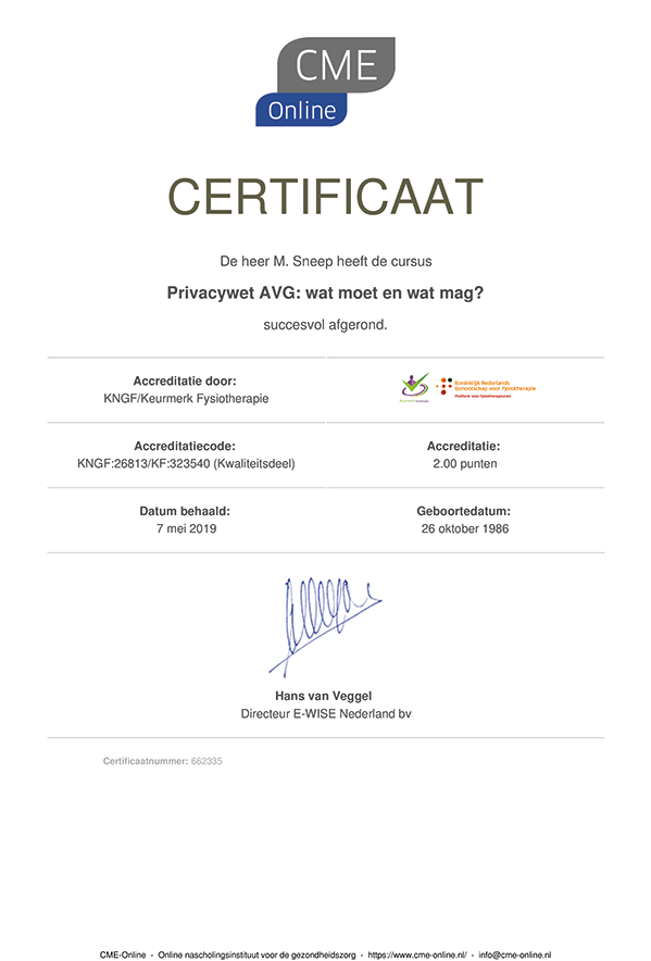 - Theoriecursus: Privacywet AVG: wat moet en wat mag?;