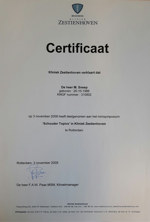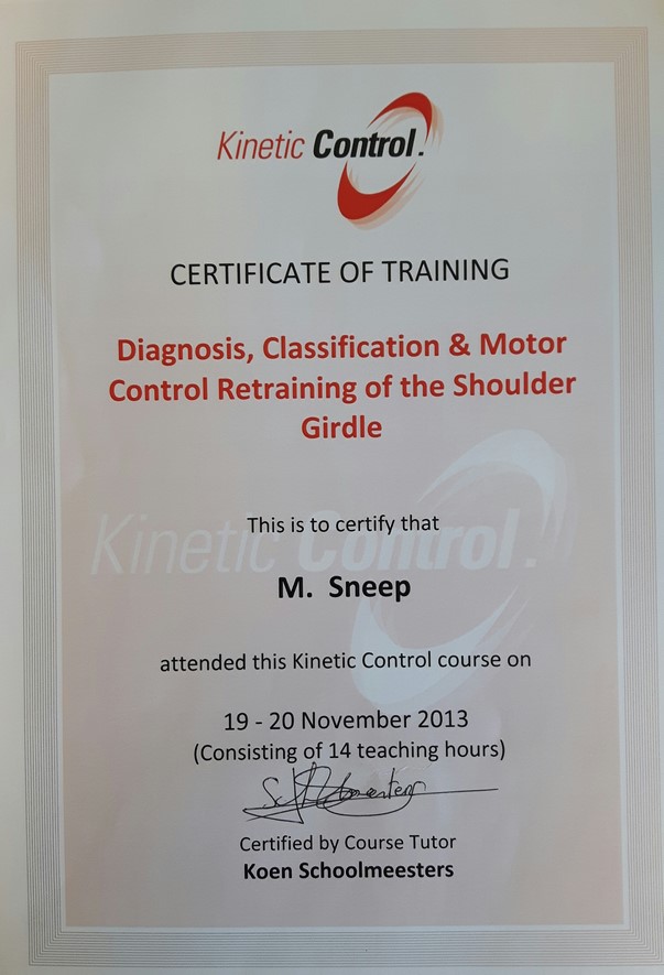 - Theoriecursus: Schouderpijn: evidence based fysiotherapie en manuele therapie;