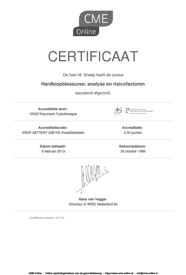 - Theoriecursus: Hardloopblessures: analyse en risicofactoren;