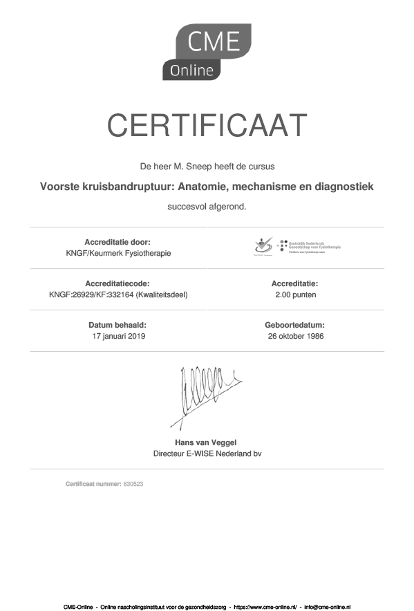 - Theoriecursus: Voorste kruisbandruptuur: Anatomie, mechanisme en diagnostiek;