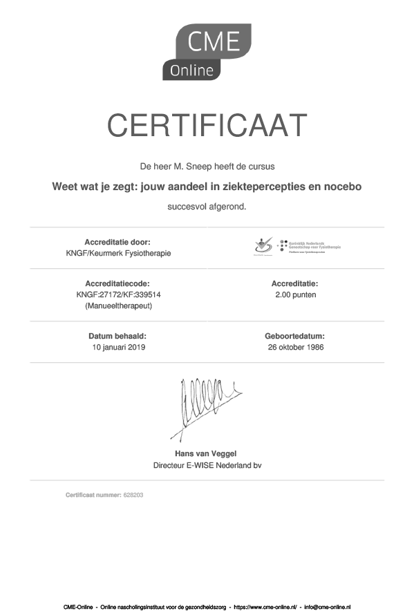 - Theoriecursus: Weet wat je zegt: jouw aandeel in ziektepercepties en nocebo;